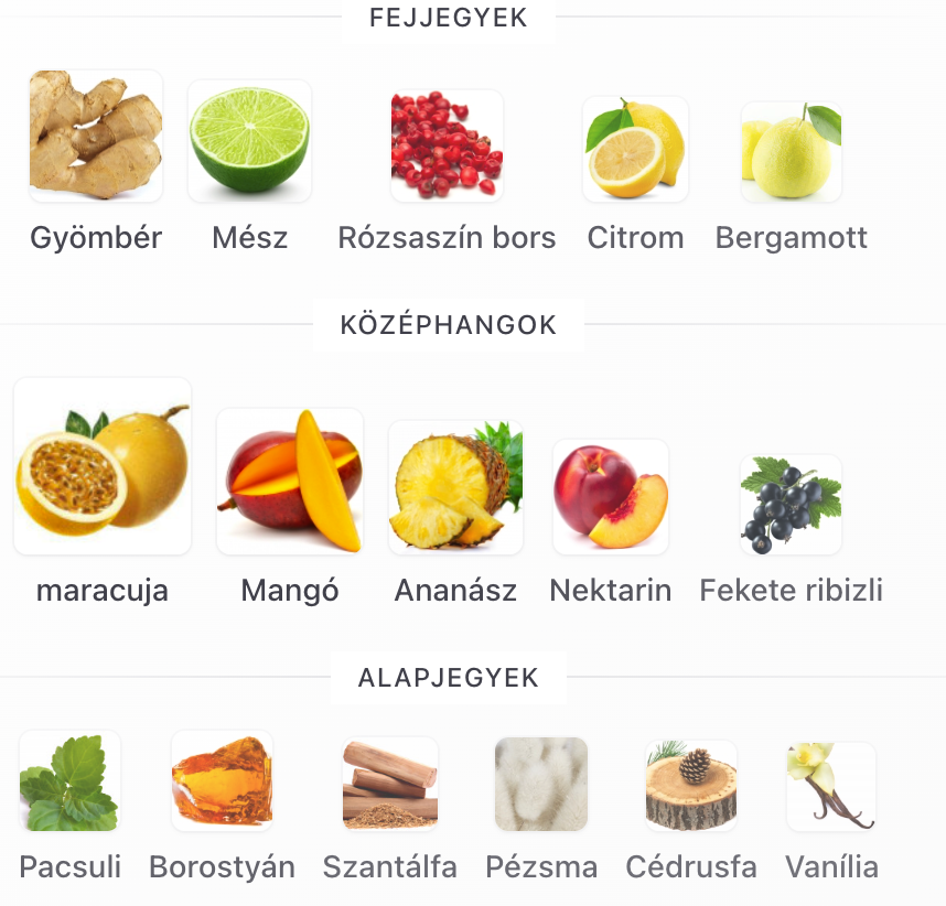 Fejjegy: Citrom, Bergamott, Lime, Gyömbér, Rózsaszínbors